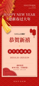 Kindly note that we are going to have Chinese Traditional New Year Holiday in 26th,Jan to 4th Feb.